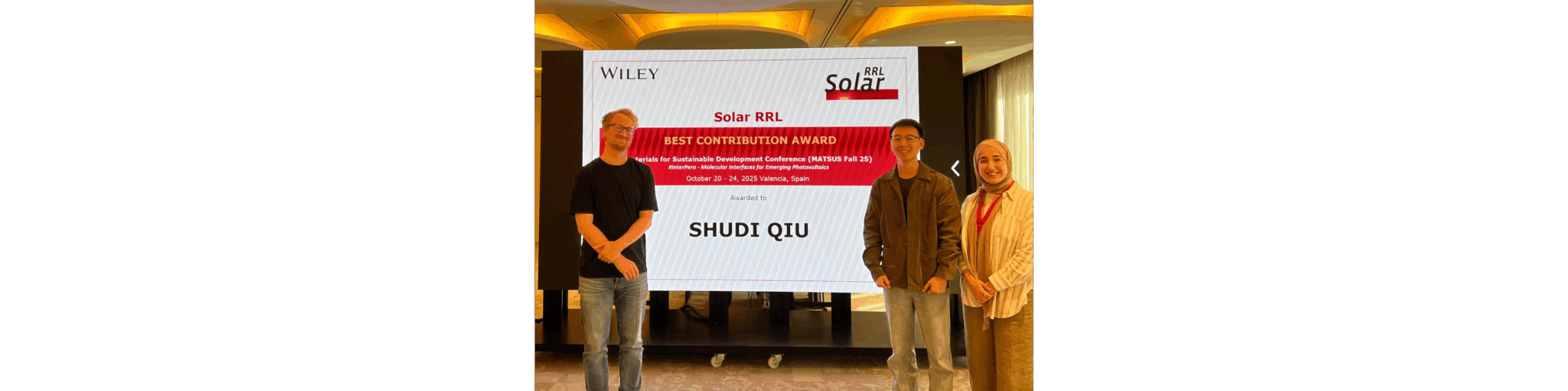 Shudi received the Best Contribution Award at the Materials for Sustainable Development Conference (MATSUS Fall 2025), held in Valencia, Spain, from October 20th to 24th, 2025.