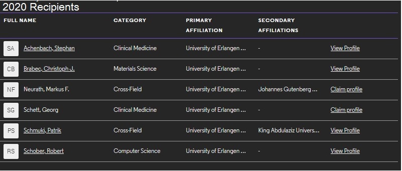 6 researchers from FAU have won this prestigious distinction in 2020, among them two from the department of materials science, Prof Patrik Schmuki and Prof. Christoph J. Brabec, who the awards in the categories “cross field” respectively “materials science”. Both are long time awardees in Clarivate´s list of the “Most Influential Researchers” or “High Cited Researchers” for several years.