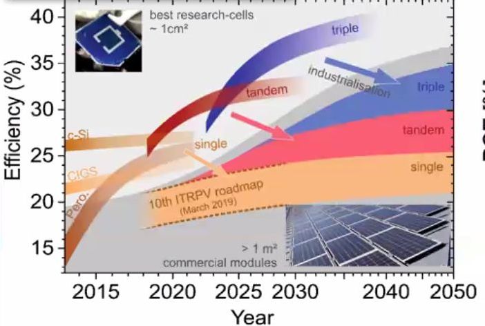 Steve Albrecht, head of a young investigator group at the Helmholtz Center Berlin reported on Perovskite-based tandem solar cells: towards 30% efficiency. The breakeven point of Perovskites with Si has been reached. PSK cells are more efficient than the best Si-cells. Prof. Albrecht reports on the work towards the 29.1% record Si/PSK Tandem cells. Also in this work passivation of the PSK Surface played a large role. Here self assembled Monolayers were used that were not further specified, but will be published on Dec. 11th!