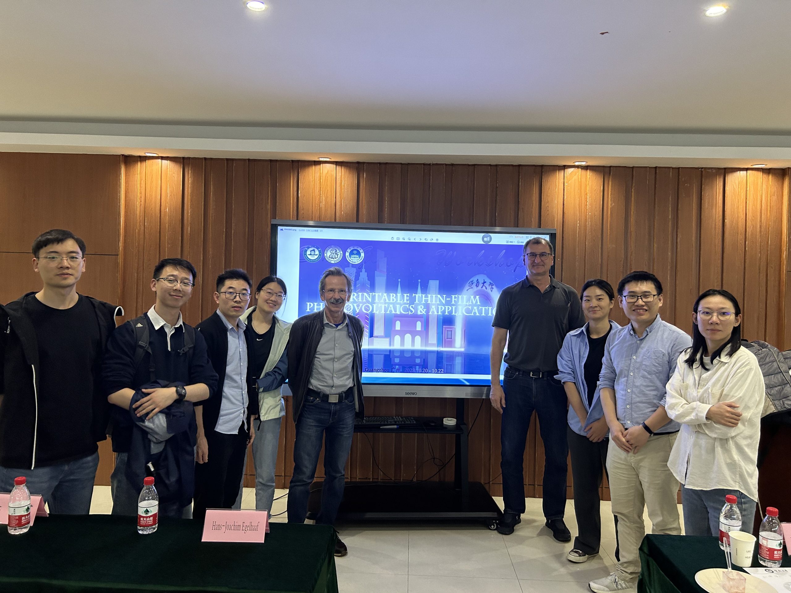 Joint workshop between FAU, FZJ, SCUT and Jinan University on “Printable Thin-Film Photovoltaics & Applications”, was held on the 21st of November at Jinan University. Christoph and Hans presented research in Erlangen and the last achievements of i-MEET in printing of organic photovoltaics. Also our doctoral students took part in the workshop: Mingjie, Shudi, Chaohui, Lirong, Rong, Jiyun and Zhenni