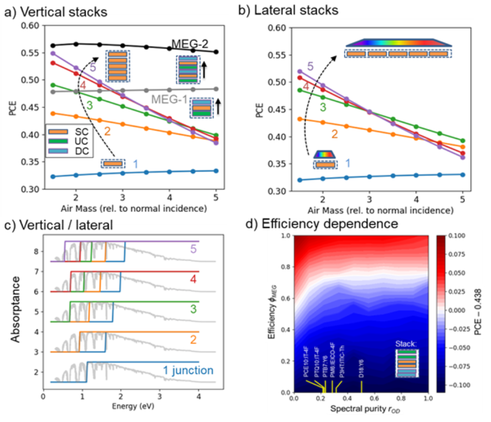 Larry, Marius, Vincent and Karen have explored multijunction devices and photon up-and-down conversion to enhance efficiency beyond single junction limits. Utilizing Bayesian Optimization in a simulation environment, our team predicts and optimizes the electrical performance of multi-junction architectures, identifying two promising models that could surpass the single junction limit.