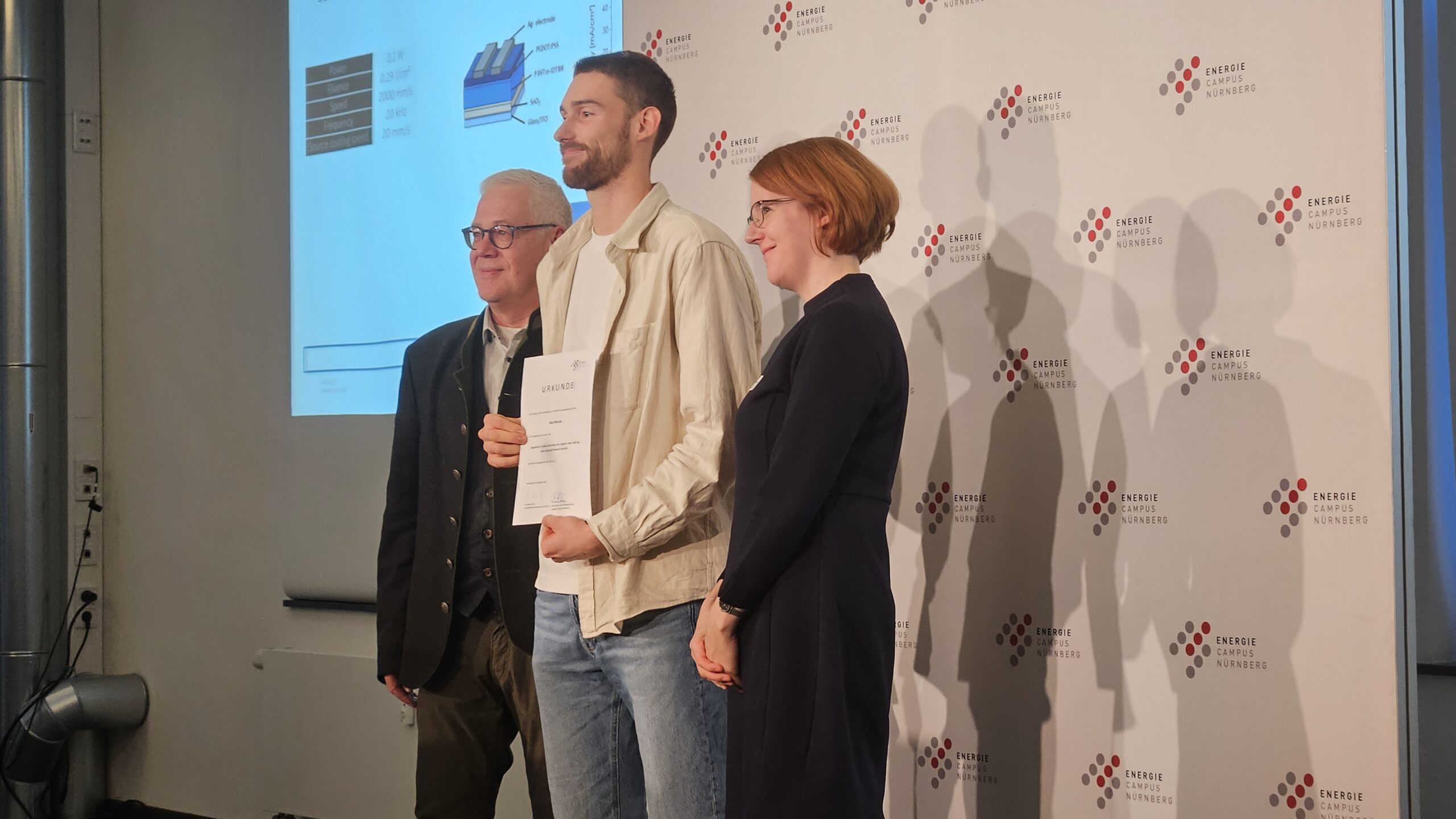 We are proud to congratulate Max Bibrack on winning the EnCN Energy Prize for his MSc thesis. His innovative work represents a significant step forward in the field of organic photovoltaics. In his thesis, Max successfully printed reflective silver electrodes for organic solar cells using a cutting-edge printing process known as Laser-Induced Forward Transfer (LIFT). This technique uses a nanosecond laser to transfer ink from a donor substrate to a target substrate in a non-contact, high-throughput process capable of handling a wide range of materials and inks. Max demonstrated the use of LIFT-printed silver top electrodes in organic solar cells. Remarkably, these cells achieved efficiencies only slightly below those of reference cells using conventionally deposited silver electrodes. This groundbreaking work demonstrates Max’s exceptional skill, creativity and commitment to advancing sustainable energy technologies. Congratulations, Max, on this well-deserved recognition! We wish you continued success in your future endeavours!